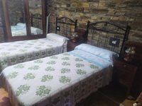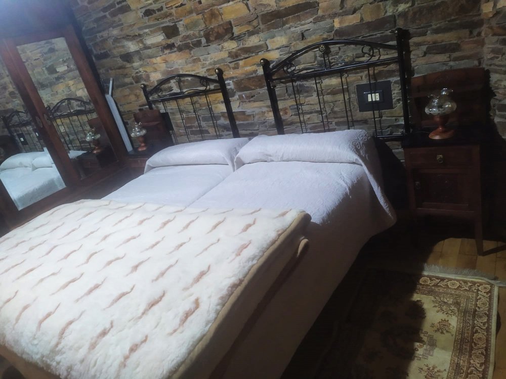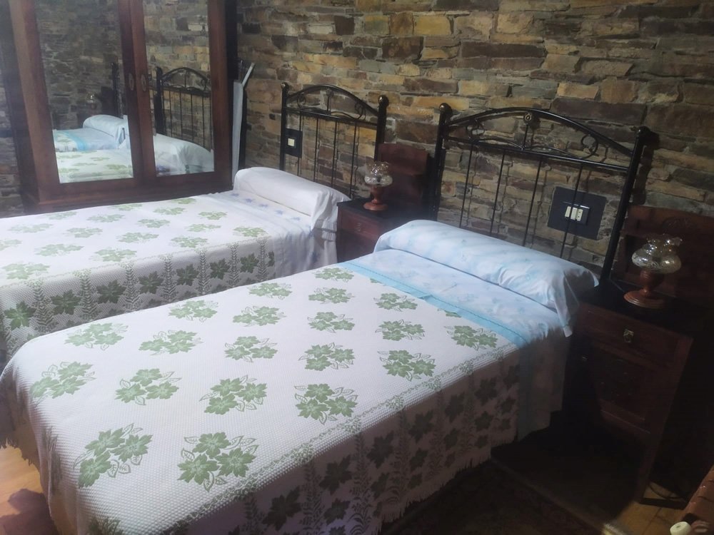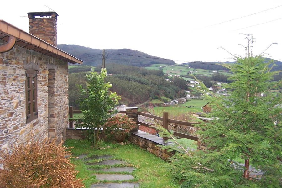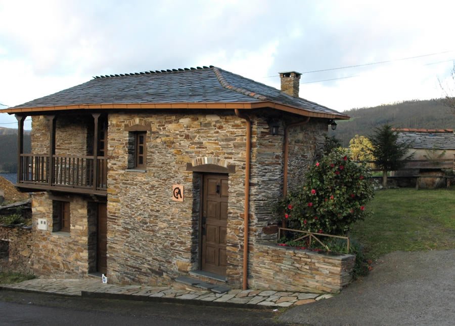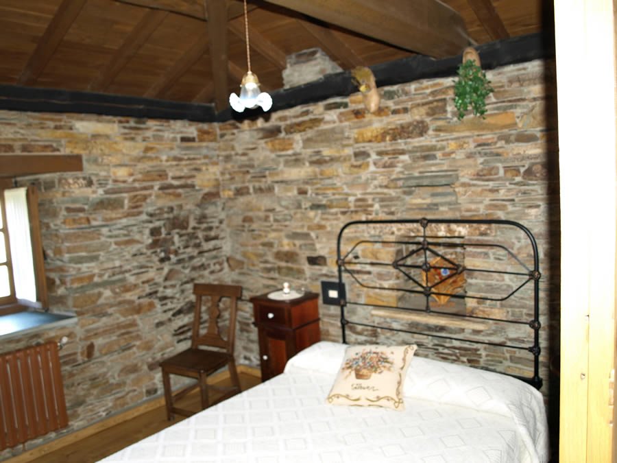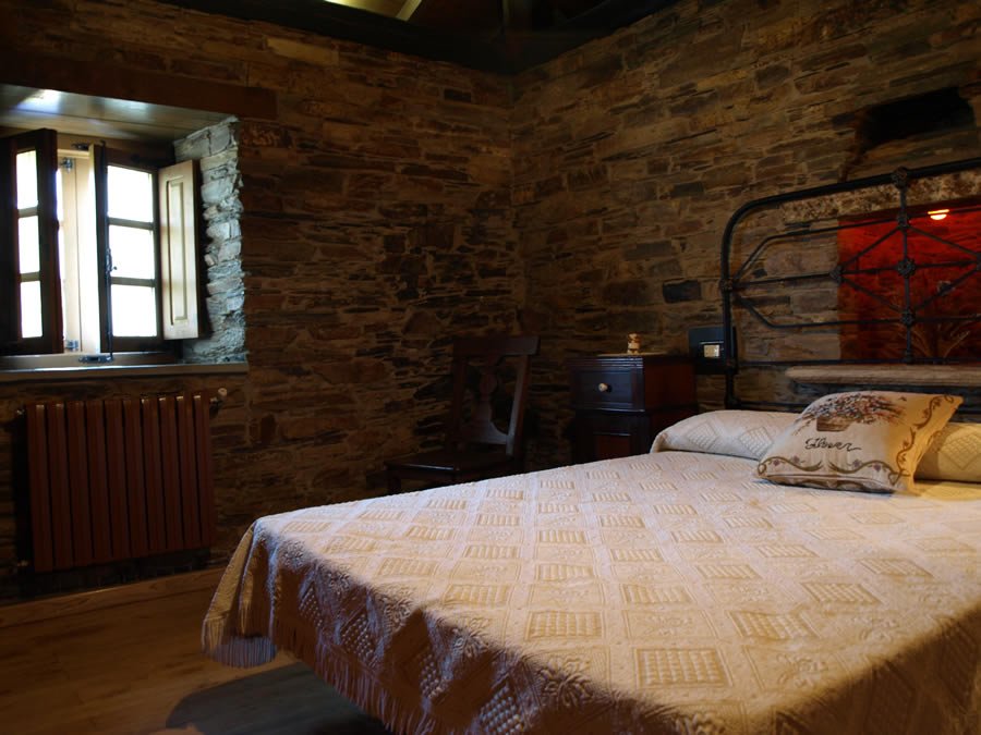 La casa se distribuye en dos plantas. En la superior se encuentran las dos habitaciones, con una restauración en madera y piedra que deja a la vista el impresionante armazón de las vigas de castaño. Una de las habitaciones conserva -tras la cabecera de la cama, de forja- la estructura del forno de la casa. Otra habitación se abre a un corredor tradicional de madera desde donde contemplar el valle del Eo y a un pequeño jardín, con preciosas vistas.